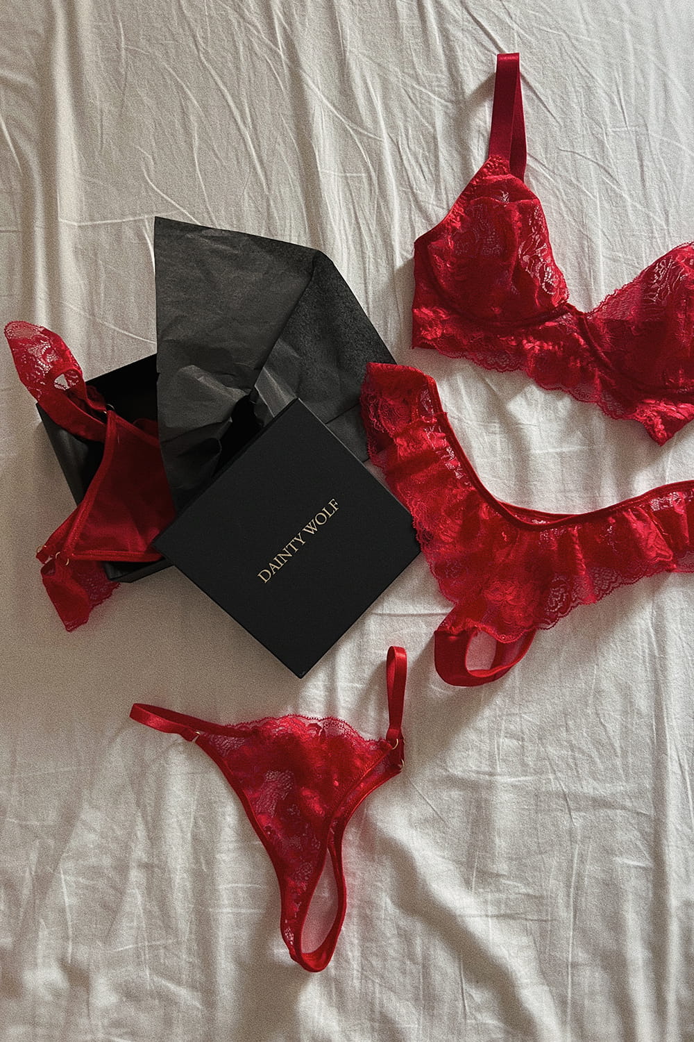 - Wykonane z koronki w odcieniu głębokiej czerwieni.