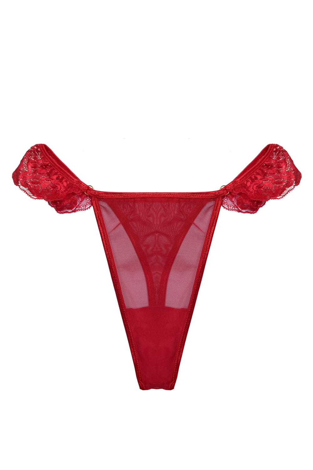 Valentina – Czerwone siateczkowe stringi z koronkowymi falbankami